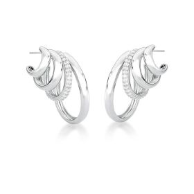 Rhodium plated quadruple hoop with a row of white zirconias. Height 3,6 cm and width 2,2cm.