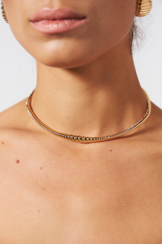 18k gold plated malleable adjustable choker. Diameter 11cm and Width 7mm.
